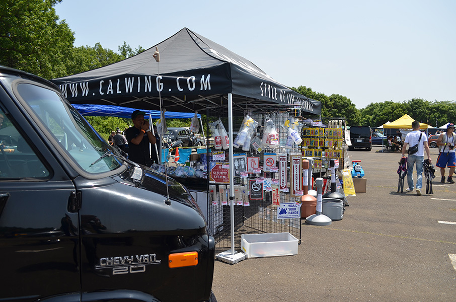 日本ではあまり見ないアメ車の古いパーツや、アメリカンな雑貨、洋服等色々個々のお店が個性的な出品物を出しておりました!