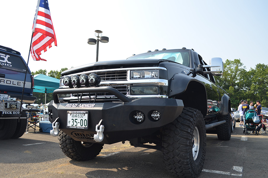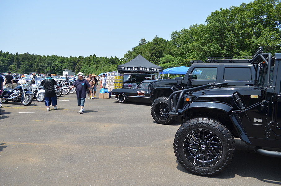 キャルウイングはCALIFORNIA MUDSTAR/カリフォルニアマッドスターに身を包んだ2台のJEEP/ジープ WRANGLER/ラングラー、HUMMER/ハマー H1、H2SUT、Chevrolet/シボレー Bel Air/ベルエアを展示させて頂き、オリジナルグッズ&アメリカングッズの販売もさせて頂きました!!